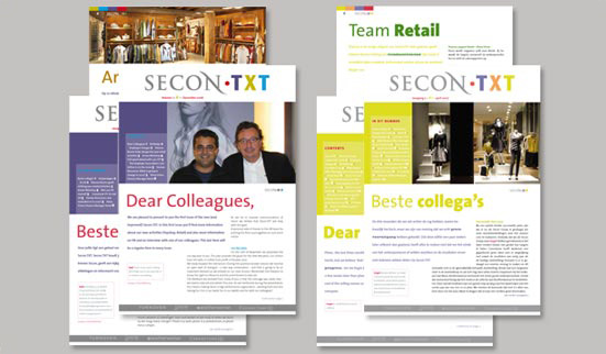 Vormgeving personeelsblad 'Secon.TXT' Omvang: 8 pagina's. Verschijning: 6x per jaar in een Nederlandse en Engelse versie.